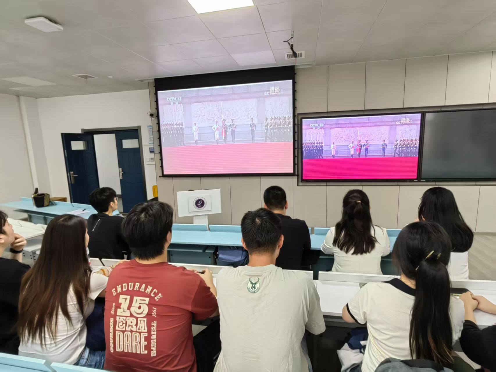 观看过程中,全体党员神情肃穆、心潮澎湃。当空中护旗梯队呼啸而过,当新型国产主战装备震撼亮相,当抗战功勋旗帜迎风飘扬,教室里不时爆发出热烈的掌声。同志们通过大屏幕,共同见证了新时代中国国防和军队现代化建设的辉煌成就,深切感受到强国强军的时代脉动。