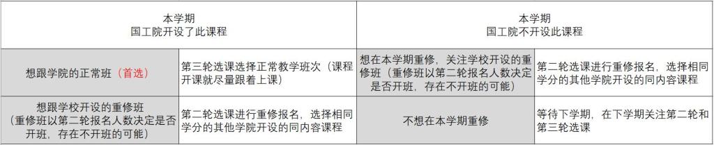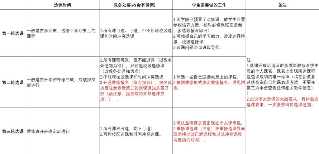 表1 教务处选课轮次的基本要求