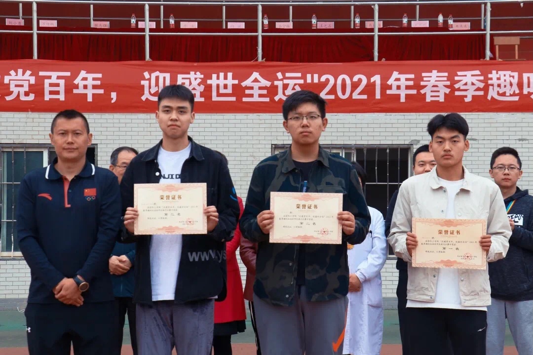 太阳成集团tyc122ccvip各班级以及裁判员代表队伴随激昂的音乐,穿着帅气的院服,迈着整齐的步伐依次入场,同学们昂首阔步,大步向前。站定操场后,开始升国旗仪式。公司党委书记杨媛致开幕词。她首先对参加本次运动会的全体人员表示感谢,希望运动员能够积极参与,赛出水平,希望裁判员们可以公平公正,严肃认真。同学们在运动场上展示的体育风貌,凝聚众志成城的团队意识,诠释奋勇争先的拼搏精神,必将使本届运动会成为公司全面贯彻党的教育方针,并预祝本次运动会圆满成功。紧接着运动员代表与裁判员代表进行宣誓,最后,太阳成集团tyc122ccvip名誉经理李言教授宣布太阳成集团tyc122ccvip“庆建党百年 迎盛世全运”2021年春季趣味运动会正式开始。