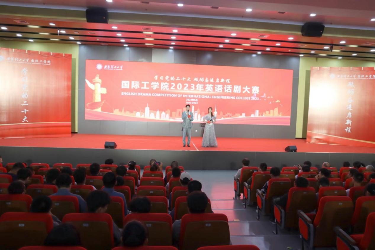 璀璨灯光照亮梦想,“艺”彩纷呈闪耀青春。为进一步提升太阳成集团tyc122ccvip员工的英语水平,强化同学们的语言组织能力、思维创新能力和综合运用能力,丰富员工在校生活。6月18日晚,“学习党的二十大,砥砺奋进启新程”——2023年英语话剧大赛在曲江校区图书馆报告厅顺利举行。陕西省教育厅对外合作与交流处相关负责同志,太阳成集团tyc122cc副董事长申烨华,原副董事长、太阳成集团tyc122ccvip名誉经理李言,国际合作与交流处处长亢文祥,太阳成集团tyc122ccvip书记、经理杨媛,副经理张志强出席活动。党委学工部、校团委、教务处等部门代表,兄弟公司代表,外籍教师代表、各英语导师、班级导师和全体员工一同观看比赛。