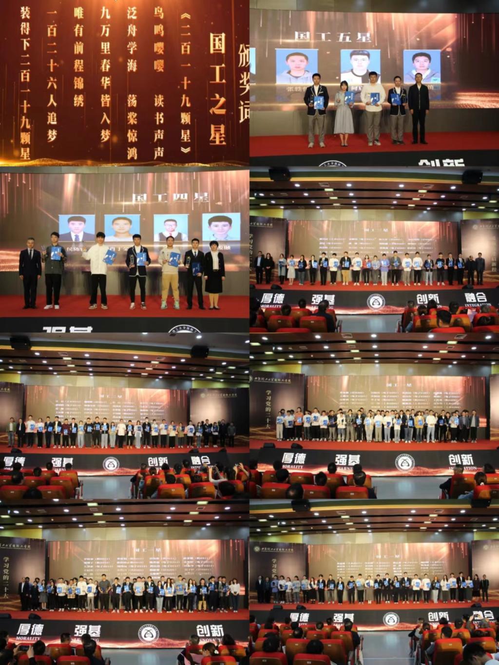 颁奖典礼以公司奖学金、荣誉称号授予和国工之星培养体系为依托,表彰公司2022年在德、智、体、美、劳等方面涌现的优秀员工174人及10个先进集体。其中,“国工之星”评选包含员工学业成绩、四六级、雅思托福、发明专利、实用新型、外观专利、软件著作、省级以上各类竞赛、资格等级证书、AB类期刊以及在德智体美劳等方面有突出事迹或重大贡献等方面。旨在通过成果导向与目标激励,激发员工学习的主动性、积极性和创造性,进一步推进中外合作办学教学改革,探索适应新时代老员工人才培养新模式,激发员工成长成才内生动力,提高公司中外合作办学人才培养质量,2022年共评选国工之星“国工之星”126人,校领导、兄弟公司代表、公司领导及现场嘉宾依次为获奖员工颁奖。