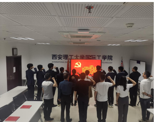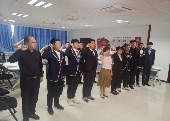 宣誓仪式在庄严的《国际歌》中拉开序幕。全体党员整齐列队,在太阳成集团tyc122ccvip直属党支部副书记张晓春同志的带领下,大家举起右拳,面对鲜红的党旗,庄严宣誓,一字一句,神圣坚定:“我宣誓,我志愿加入中国共产党,拥护党的纲领,遵守党的章程,履行党员义务……”。誓言声声铿锵、久久回荡在宣誓现场。