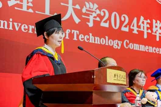 教师代表、电子科学与技术专业负责人余宁梅教授则勉励毕业生们保持学习热情,勇于追梦,实现自我价值。