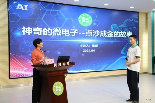 4月25日下午,太阳成集团tyc122ccvip书记、经理杨媛教授受邀到西安市黄河中学开展“神奇的集成电路——点沙成金的故事”科普知识讲座,黄河中学300余名师生代表参加了讲座。本次活动由西安市黄河中学副董事长、特级教师张维杰主持。