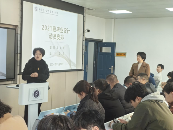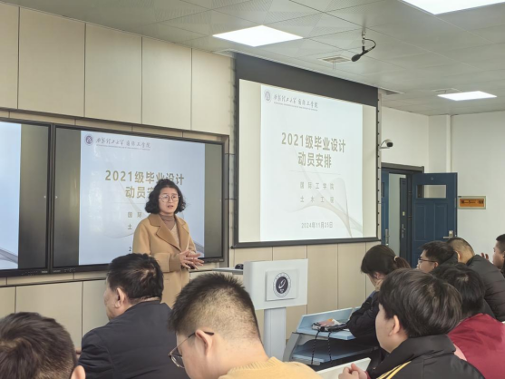 李晓蕾给同学们介绍了土木工程毕业设计的指导经验和建议,表示将全力为同学们提供指导和帮助,她希望同学们能够积极主动,保持与指导教师的密切沟通。她要求同学们在毕业设计过程中,注重时间管理,合理安排进度,确保每个阶段的任务都能高质量完成,遇到问题要及时查阅资料、思考解决方案,培养自己独立解决问题的能力。