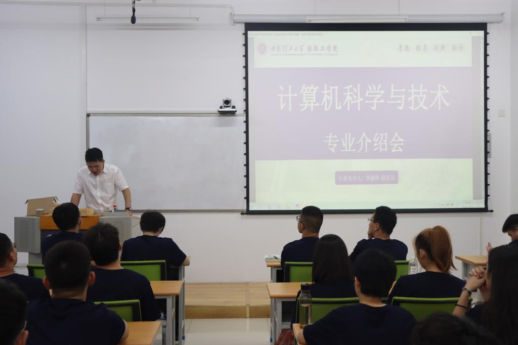 机械制造设计及其自动化专业负责人李淑娟从机械制造的发展历程、培养能力、办学和实践资源等方面展开了详细的介绍。作为土木工程专业负责人,党发宁围绕土木工程的历史积淀、发展前景、办学资源、就业方向等方面向同学们做了详细的讲解。电子科学与技术专业负责人余宁梅为新生们细致解读了专业概况、课程设计、学科体系建设以及教学资源等。计算机公司副经理鲁晓锋全面细致地讲述了计算机科学与技术专业背景、专业特色和优势、人才培养模式及学业规划等方面。