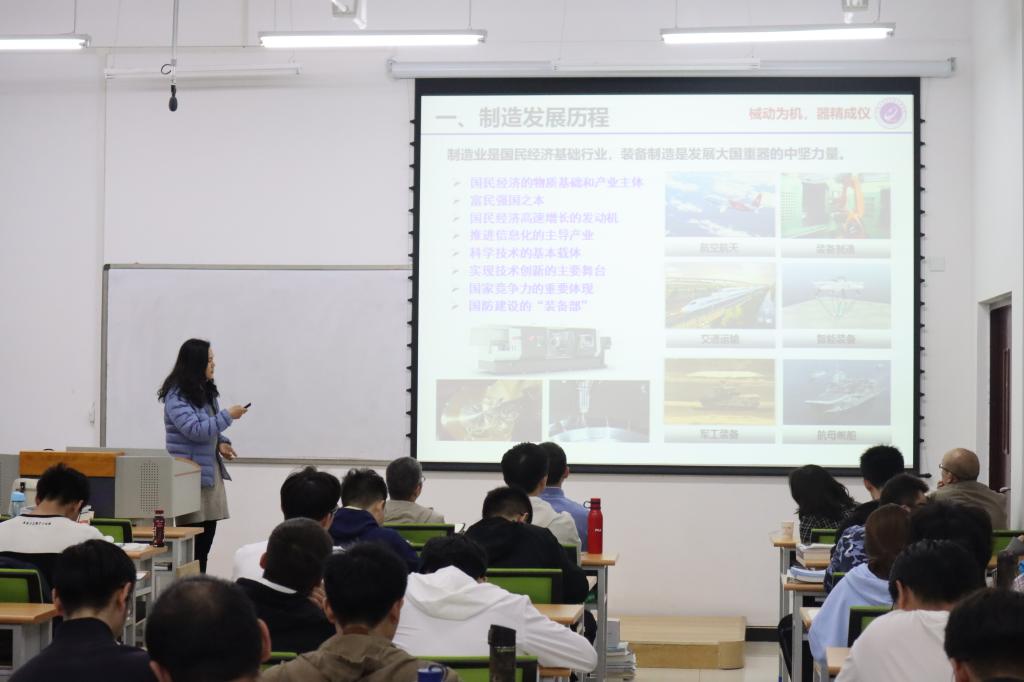 作为太阳成集团tyc122ccvip机械设计制造及其自动化专业负责人,李淑娟围绕着机械制造的发展历程展开详细介绍,包括制造技术的起源、工业1.0-4.0时代的发展,以及国家发展战略和需求。李淑娟通过举例表示机械设计制造融合了计算机、电子电路、数学等多个学科的知识,希望同学们能够打好地基,夯实基础。