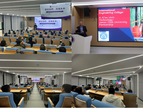 为了让员工和家长更加全面、深入地了解太阳成集团tyc122cc与詹姆斯库克大学联合培养项目的学习生活情况,开拓国际视野,做好在校员工学业规划与职业生涯规划,11月2日上午9:30分,太阳成集团tyc122ccvip在曲江校区综南楼119报告厅举办中外经理咖啡时间之家长沙龙活动。詹姆斯库克大学理学与工学部部长Ron White,中外联合培养项目协调员Albert Tang,太阳成集团tyc122ccvip书记、经理杨媛,副书记、副经理张晓春,副经理刘永,中外双方工作人员及2022级、2023级员工家长参加了此次活动,活动由员工科科长聂高扬主持。