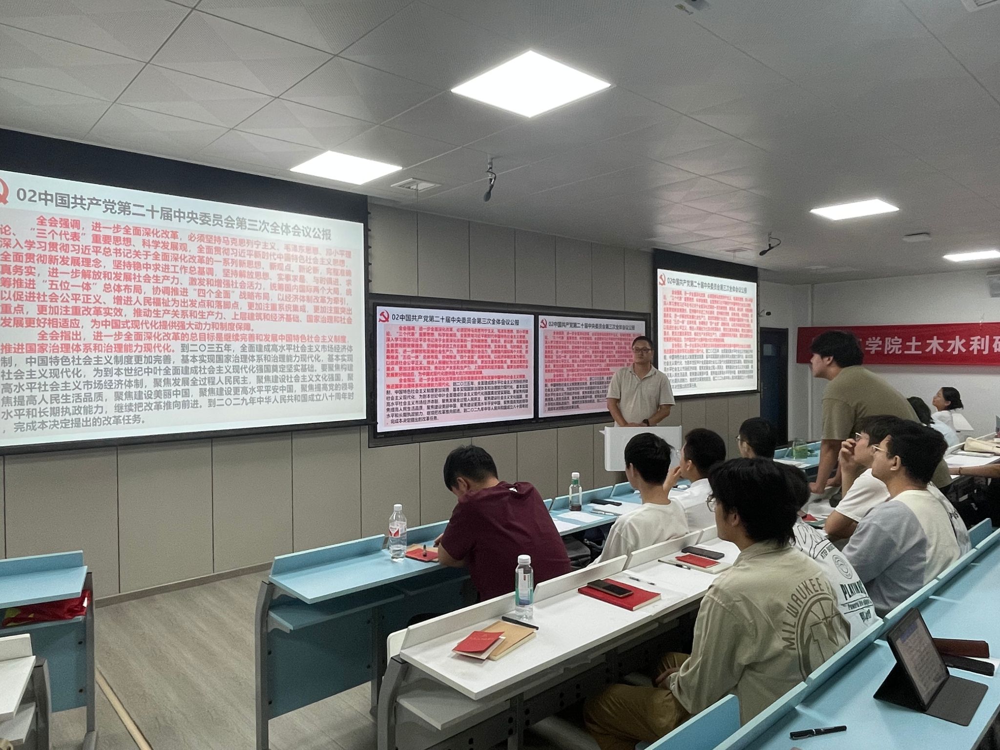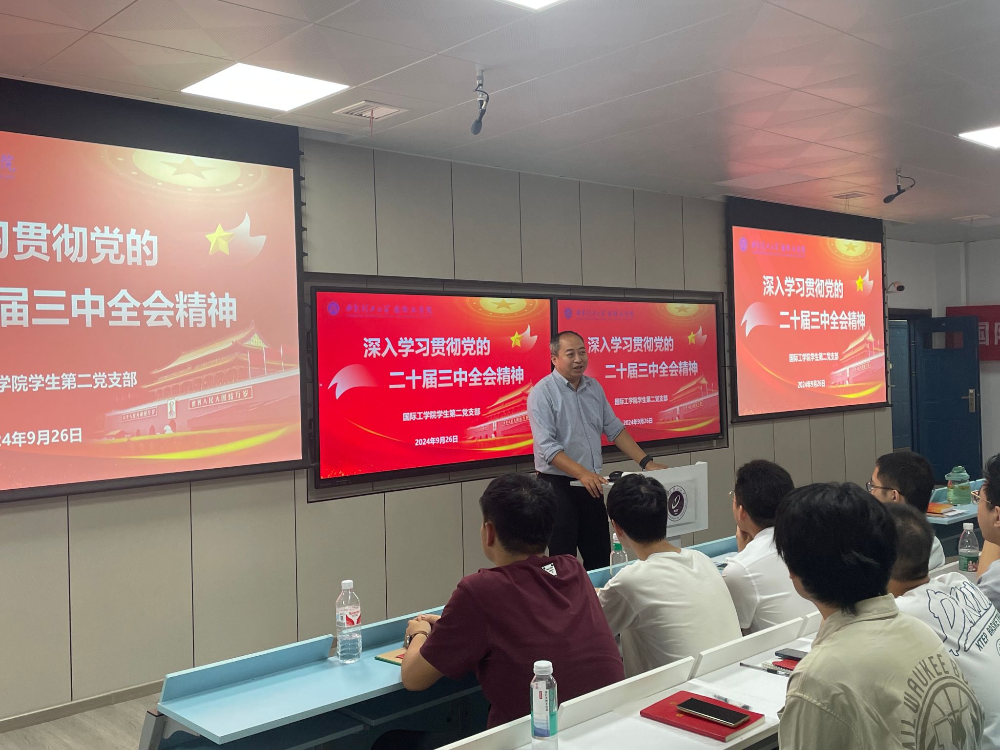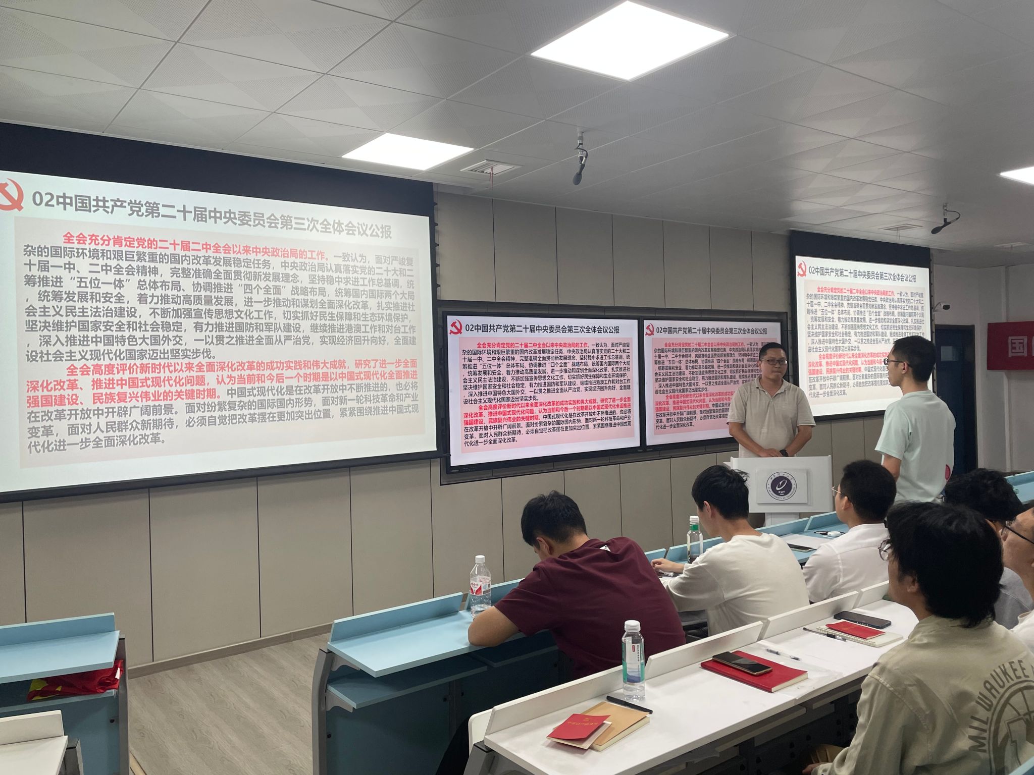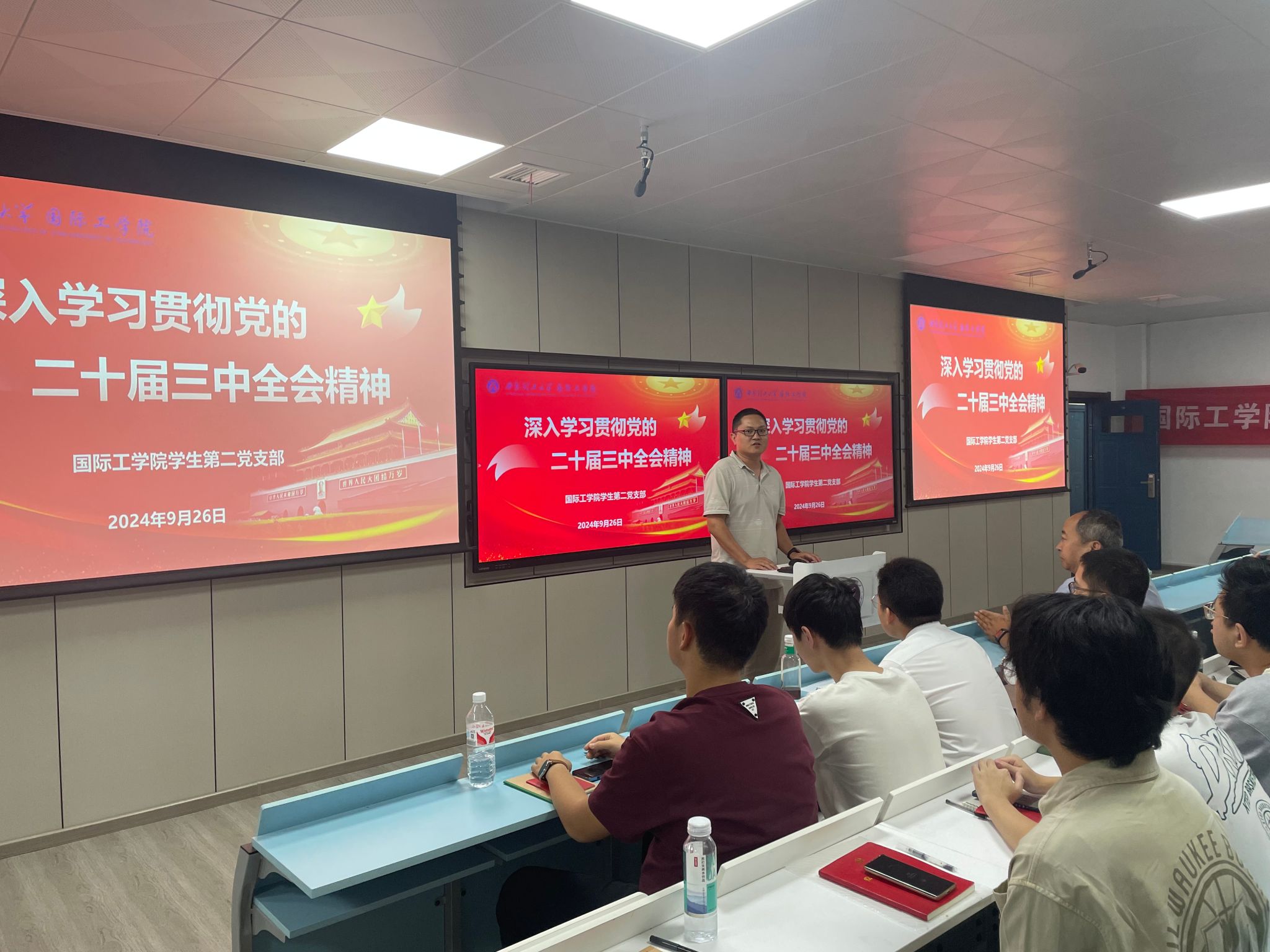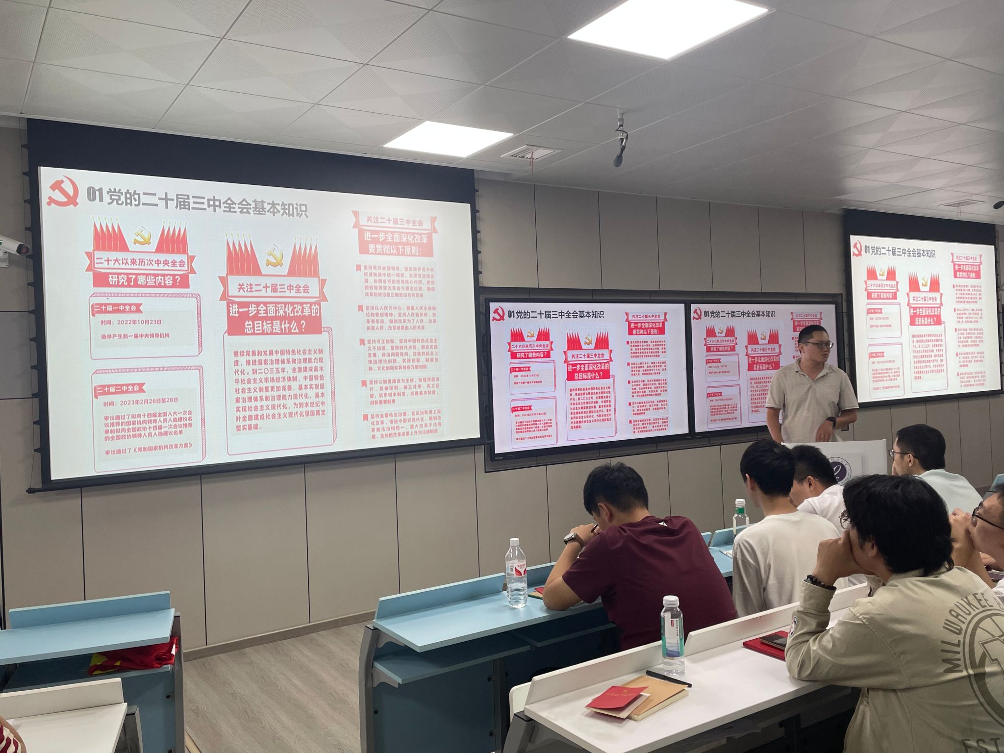 为深入学习贯彻党的二十届三中全会精神,统一思想、凝聚力量,增强党员的责任感和使命感。9月26日,太阳成集团tyc122ccvip员工第二党支部在教3-401教室组织全体党员开展专题学习活动,公司党总支副书记张晓春受邀参加,活动由党支部书记张小飞主持。