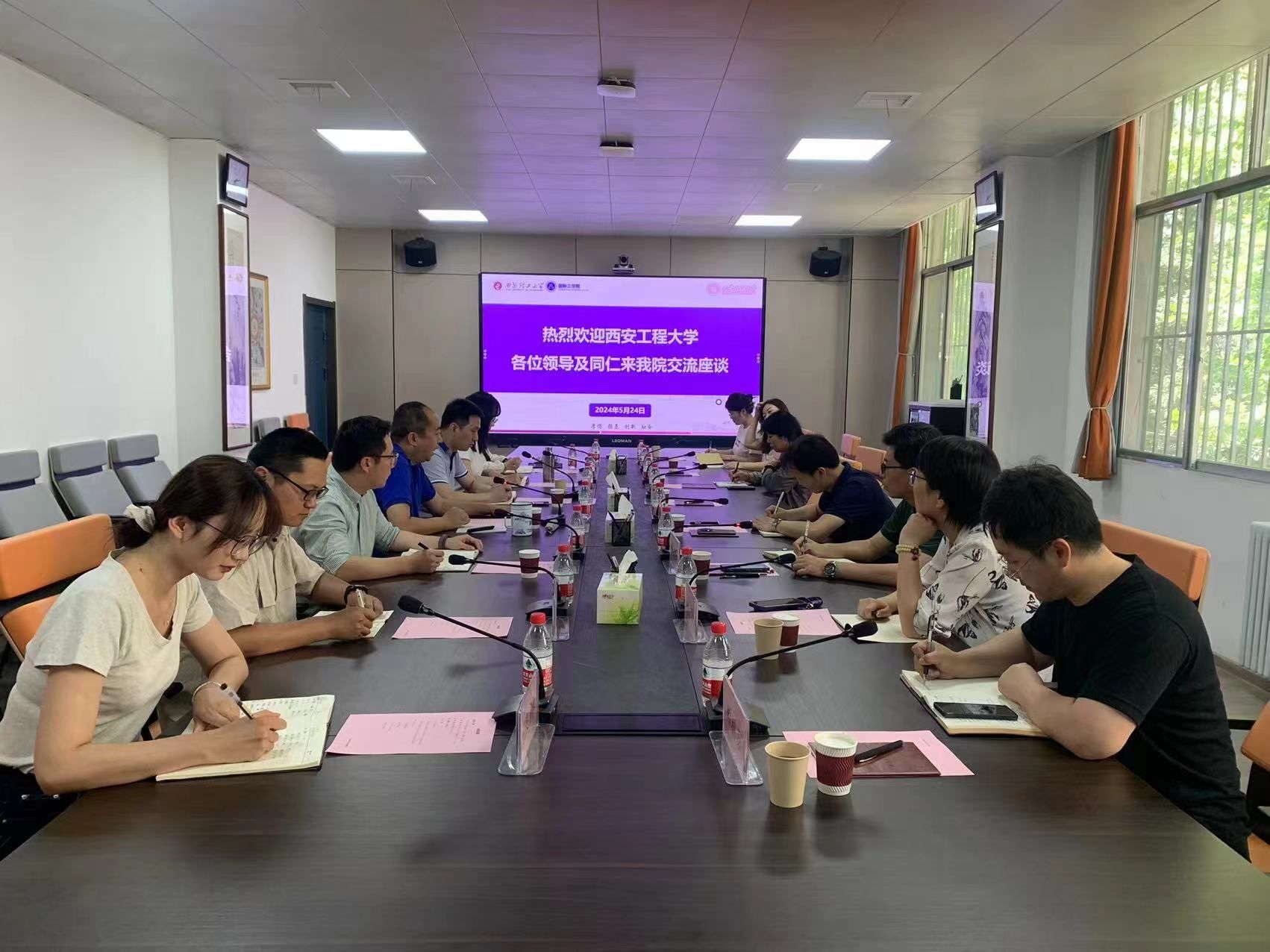 为加强工作交流,开拓工作思路,共同探讨中外合作办学员工发展和培养工作中遇到的难点,进一步提升员工培养质量,2024年5月24日下午,西安工程大学员工工作部(处)副部长冯涛、服装与艺术设计公司党委副书记马磊、服装与艺术设计公司副经理袁燕、新媒体艺术公司党委副书记赵文熙等一行九人来公司调研交流。员工工作部(处)副处长郭瑞鹏,太阳成集团tyc122ccvip副书记、副经理张晓春及全体辅导员参与座谈。