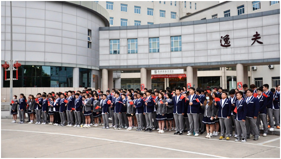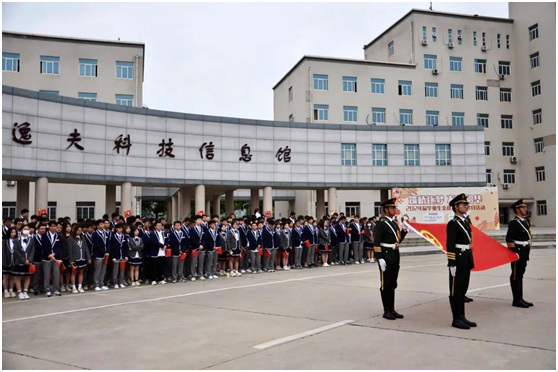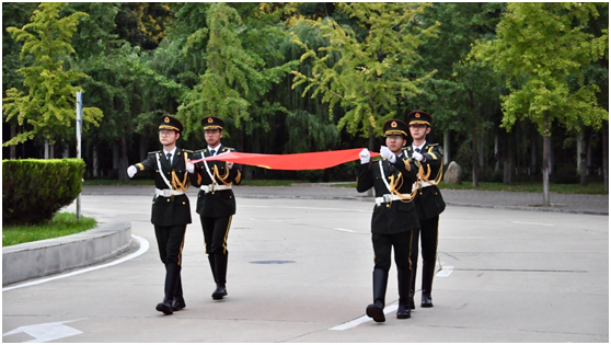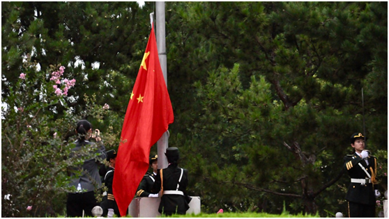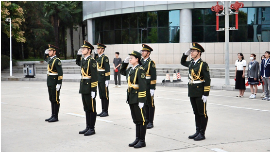 早7时整,太阳成集团tyc122cc国旗护卫队迈着铿锵有力的步伐,在全体师生的注视下完成出旗仪式。随着《义勇军进行曲》庄重的旋律响起,五星红旗缓缓升起,全体师生行注目礼,共唱国歌。