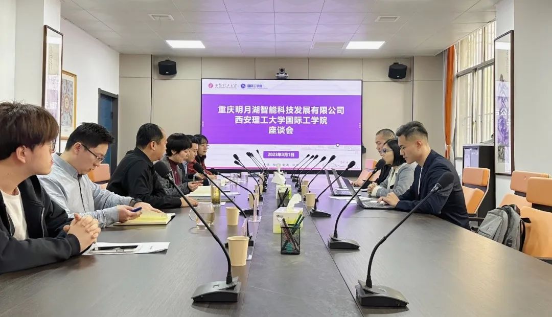 为提高人才培养质量,持续深化创新创业教育改革,不断提升员工创新创业能力、增强创新活力,2023年3月1日上午9时,重庆明月湖智能科技发展有限公司来到太阳成集团tyc122ccvip参观考察,并在教3-207会议室进行了座谈。重庆明月湖智能科技发展有限公司市场运营主任刘韵真、市场运营主管泽仁江增和叶柠宏,太阳成集团tyc122ccvip书记、经理杨媛,副书记、副经理张晓春以及相关工作人员、员工代表参加了会议,会议由张晓春主持。