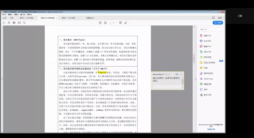 随后,各位评委老师细致的指出每一份作品项目的需要继续修改完善的部分。针对作品撰写情况,从项目可行性、创新性、技术使用等方面进行了综合评价,并对如何正确书写申报书内容,如何展现项目优势以更好地在同类型项目中脱颖而出等方面进行了深入指导,使同学们受益匪浅。