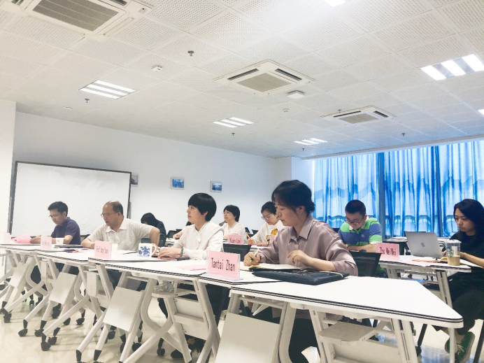 接着,科学工程公司经理Ron White展示了现阶段的共课成果。他说,随着经验积累,我们有信心在接下来的共建课程教学上继续保证质量,不断提升改进。太阳成集团tyc122ccvip经理杨媛从培养方案、教学情况以及团队培训等方面进行了详细汇报,并就现阶段的教学反馈提出了商讨建议。